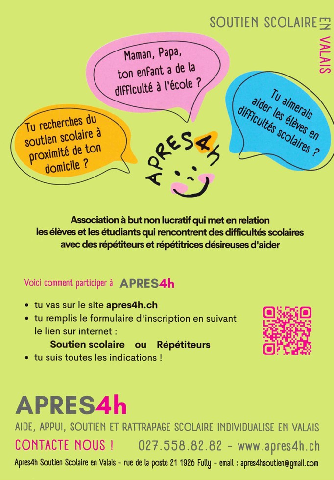 La mission de l’association de soutien scolaire « Après4h » est d’accompagner les élèves dans leur réussite scolaire à travers un encadrement bienveillant et adapté à leurs besoins.